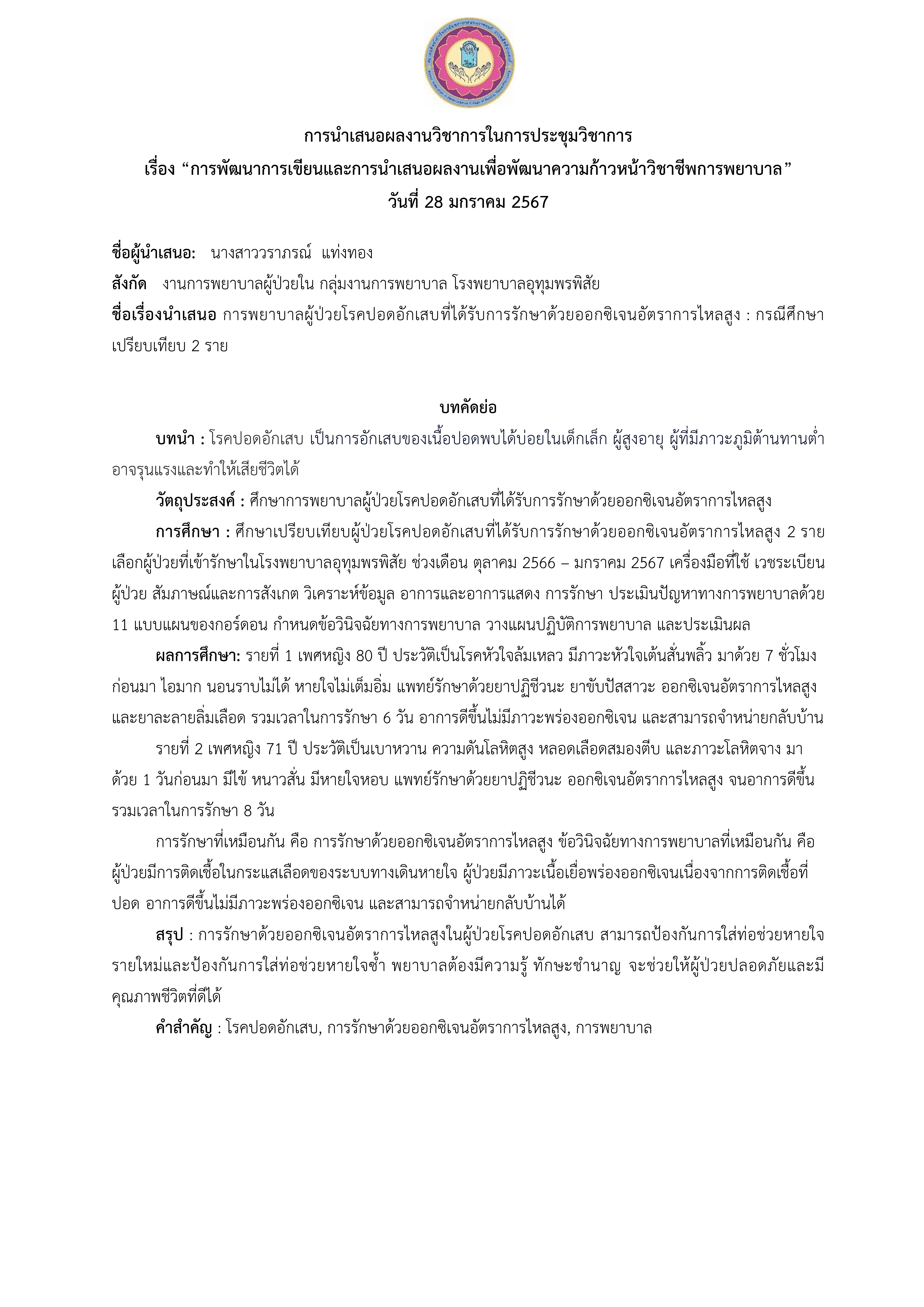 [ 2568 ] : การพัฒนาการเขียนและการนำเสนอผลงานเพื่อพัฒนาความก้าวหน้าวิชาชีพการพยาบาล